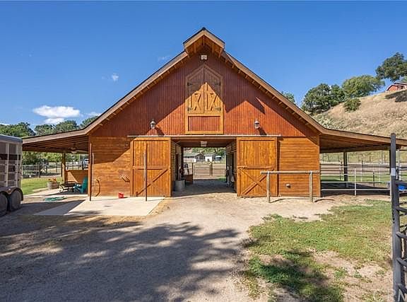 Gorgeous, peaceful property in the Heart of Templeton. This property boasts of a park like setting and is just minutes from town. Located on 3 level acres with a four (4) stall Equestrian Barn, two with paddocks, and one being used as a tack room. There is a wash rack and a loft in the barn. 50 Round pen, roughly an acre pasture, and a chicken coop are all included. This 4 bedroom, 3 bath home has a spacious open floor plan with vaulted ceilings and two Master suites. There is also a playhouse in the side yard, and plenty of space for entertaining. There is a spacious 24x36 metal shop with a 10ft roll up door. Ample space for Horses, 4-H animals, trailer, RV, Boat, Tractor, Ect. Potential for a guest house, ADU, or a family compound. Mostly Fenced. Privacy awaits you behind a gated driveway with access to a creek.