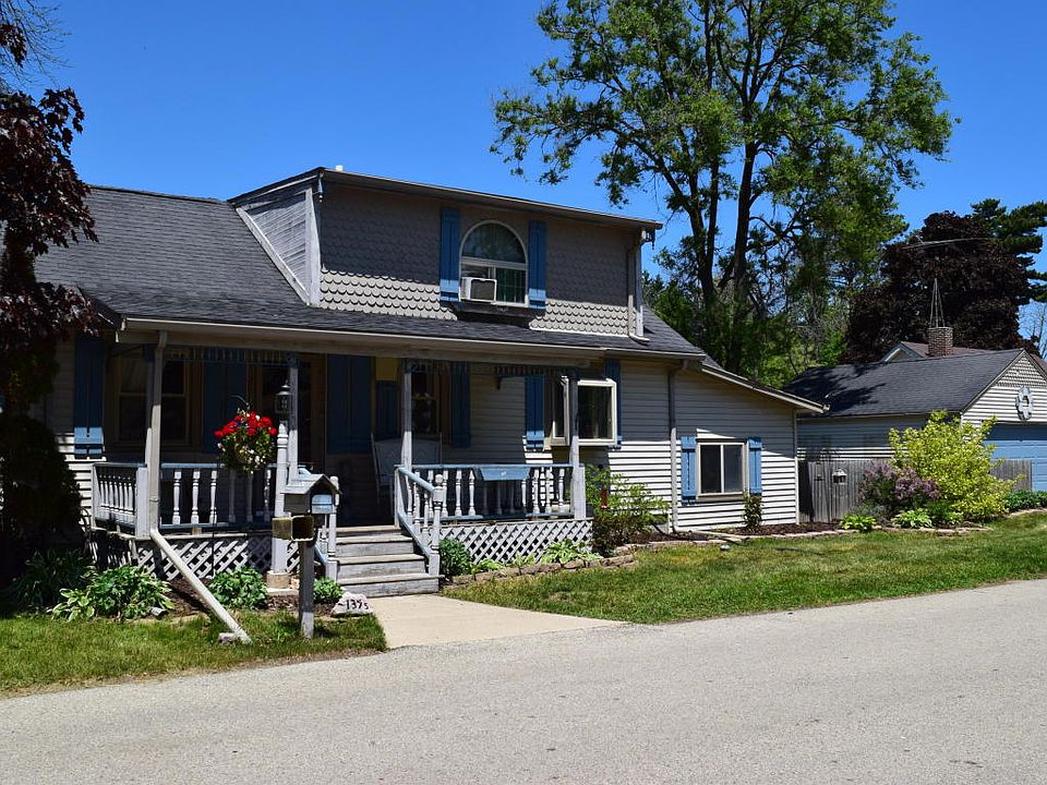 This is the perfect 2 bedroom ''cottage'' near Lake Michigan. 1 bedroom on the main floor with a large walk in closet and a second ''loft'' style bedroom. Charming fenced in yard with a gazebo to relax in. Natural fireplace will warm the house or open the new windows in the summer to enjoy the cool lake breeze. 2 car garage is a nice bonus. Neighborhood lake access at the end of the road. Relax out of the weather in your climate controlled sun porch with unique brick floor. This house would also be perfect for an investor looking to rent to Carthage College students.