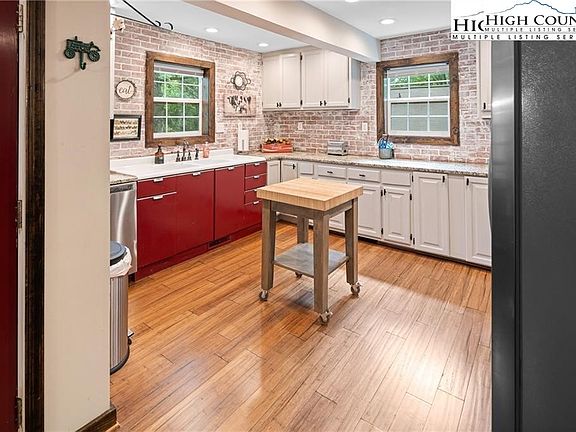 Take a deep breath and come enjoy this ample space for people and good times at this home that includes 2 additional private rooms for flex space, additional rental income, or to spread out. Peace, quiet, and the sounds of nature are located along Howard's Creek. Just 5 min from Boone and App State! The perfect combination of serenity and convenience. Nestled among lush trees, enjoy serene privacy while being just minutes from downtown Boone. The spacious living area features a stone fireplace, and the modern kitchen is just right for entertaining. Step outside to a large deck with stunning views, great for relaxing or hosting. Don’t miss the extra-large hot tub to enjoy those starry evenings or sit by the custom fire pit. This home comes fully furnished with tasteful decor and plenty of space for time with friends and family.