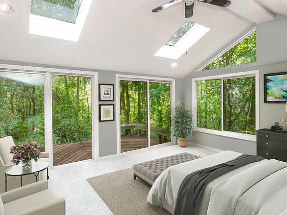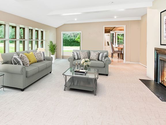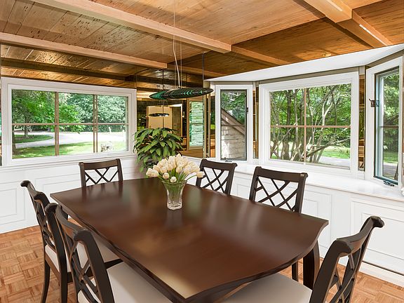 This River Hills Contemporary home is filled with features inside and out. The white kitchen opens to a sunny family room with fireplace thanks to beautiful skylights, vaulted ceiling and huge windows. The warm dining room is perfect for family dinners and entertaining for holidays. The private library with fireplace is ideal for a home office or cozy study. Relax in the master suite with spa bath and a private deck. The lower level is finished and features an optional fourth bedroom, gym and sauna. Outdoors is a true escape with tiered deck, pool, lovely gardens and beautiful views of the grounds. Some images have been virtually staged and/or enhanced.