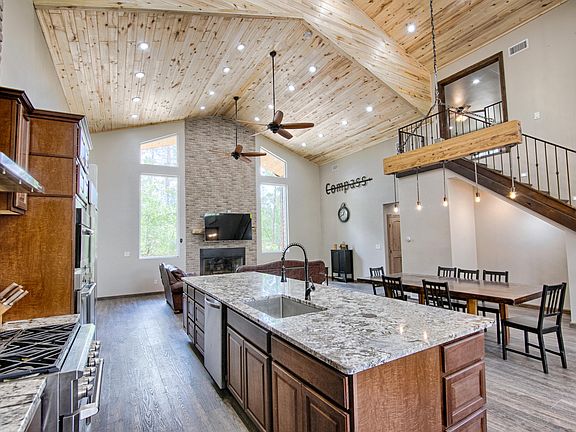 This home is a MUST see! No expense was spared when designing and building this incredible home. Featuring a gourmet kitchen with a commercial grade LARGE fridge and an island to swoon over! The ceiling was designed with gorgeous Aspen wood, and the large Wood burning fireplace is complete with a gas starter. With Low E Windows, are you sure to keep your home the temperature you desire. This home also has a beautiful gas fireplace on the covered deck with built in BBQ and sink. Incredible stacked stone FP and accents. This is a beautiful and unique custom home on 1.31 acres with lots of tall trees and nice mix of trees as well. Gorgeous Home! Extended 3 car garage! In addition to all this, the home also has a private Guest Quarters!