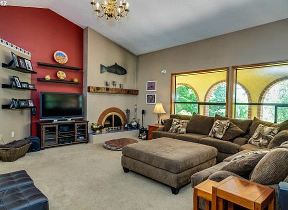 Gorgeous home on 8+ private acres with 300' of riverfront! Fabulous open floor plan with vaulted ceilings & tile flooring throughout. Kitchen has gorgeous tile counters & back splash, built-in range, island, & built-in oven. Three large bedrooms, sun room, huge covered patio & yard. Master suite is lovely retreat with fireplace & deck. The dock has a boat lift. Shop for extra storage or work space.