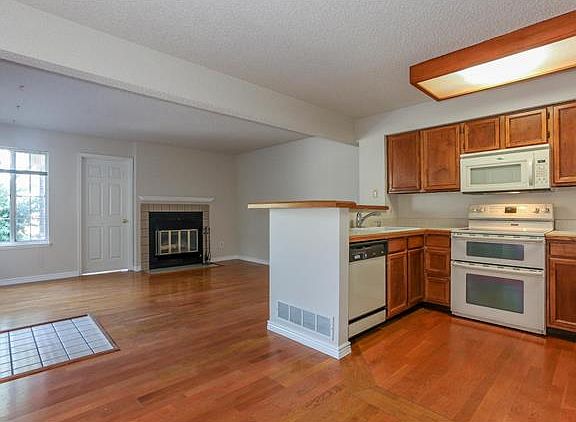 Walk out your front door and view the Meadow Hills Golf Course. Perfect condition and ready to move into this 2 bed, 1 bath home. Very open and not a square inch of wasted space. Beautiful engineered wood floors, new paint, new stove in the kitchen, stackable washer & dryer and last but not least is the oversized attached one car garage.