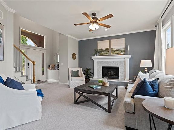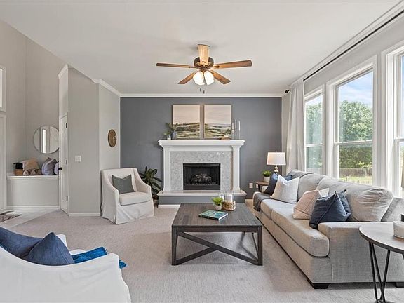 • Features: Carpet, Ceiling Fan(s), Fireplace