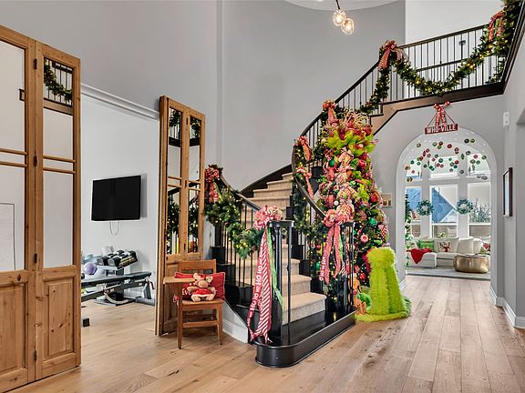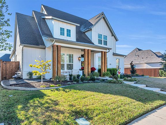 Gorgeous Toll Bros customized 4 bedroom, 4.1 bath home with generous living spaces throughout. Entry opens to an stunning 2 story foyer and elegant winding staircase. Just off the foyer sits an exercise room(or home office!) plus private mother in law suite featuring walk in closet with custom storage. The heart of the home is the soaring 2 story main living, open to the kitchen and dining rooms and overlooking the rear patio and backyard. Enjoy the gas log fireplace for cozy evenings and a convenient dry bar-butler’s pantry ideal for all the extras and seamless entertaining. The chef's kitchen features a spacious central island for casual dining and meal prep and a 6 burner KitchenAid gas range. For convenience, there's both hot water & filtered water dispensers at the sink. The dining space features a built-in storage cabinet - great for wine, linens or serving dishes. The luxurious primary suite boasts a vaulted ceiling features a wall of windows with serene backyard views. The spa-inspired ensuite bath showcases separate vanities, a soaking tub, shower for two and an expansive walk in closet. Up the curving staircase you'll find a large family room with built in storage galore - room for media components, games, books, etc. Two additional bedrooms upstairs, both ensuite with generous walk in closets, provide comfort and privacy. Walk-in attic storage for all your seasonal items has also been created. The oversize garage has a half bay with space for a golf cart. In addition, the garage has been pre-wired for 2 EV chargers and an exterior generator, in case of severe weather. Walsh Ranch is a unique sought after community - there is an on-site elementary school, hike and bike paths, lake and parks plus an entire entertainment complex - pools, splash pads, sport courts, and athletic club. All within the award winning Aledo ISD!