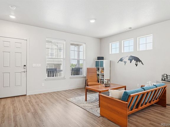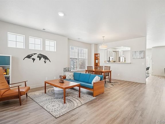 PRICE REDUCED!! Welcome to this stunning end unit townhome! Enjoy abundant natural light throughout the main level with its open concept floorplan and numerous windows to see the mountain views. The kitchen features quartz countertops, stainless steel appliances, a stylish backsplash, an island, and soft close cabinetry. Relax by the fireplace in the inviting living room. The main level also includes a dining area, powder bath, additional living space, and a convenient laundry area. Upstairs, retreat to the primary bedroom sanctuary with vaulted ceilings, an ensuite bathroom featuring dual vanities, and a spacious walk-in closet. Two more generously sized bedrooms and a full bathroom complete the upper level. Convenience meets low maintenance with a xeriscaped private yard and attached two-car garage. This home has been well maintained inside and the HOA has just painted the exterior and garage. It truly is move-in ready and awaits its new owners!