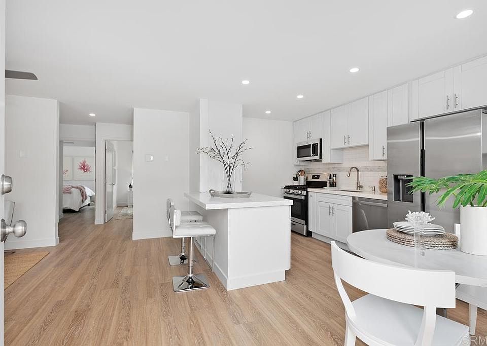 Beautifully remodeled 2-bedroom condo located in Del Mar, just 1.2 miles from the beach. Every corner of this chic home has been meticulously upgraded to offer the ultimate in modern living. Light-filled rooms that perfectly complement the new, stainless steel kitchen appliances set against quartz countertops and a stunning full-height tile backsplash. In the bedrooms you will find new mirrored closet doors and custom built-ins, new LED recessed can lights and ceiling fans. The primary bathroom is a masterpiece of design, featuring exquisite custom tile work, a European frameless glass shower door, and innovative backlit vanity mirror for a touch of luxury. Both bathrooms have been thoughtfully updated with new plumbing fixtures, sinks, faucets, and eco-friendly one-piece low-flow toilets, ensuring both elegance and efficiency. Your comfort is guaranteed with the installation of all-new Milgard dual-glazed windows equipped with high-performance glass, and stylish Levolor roller window shades to control the ambiance to your liking. The living spaces flow seamlessly with new laminate plank flooring throughout, accented by new Shaker doors, casing, and baseboards, adding a touch of sophistication to this beautiful home. Nestled in a serene complex that boasts a quiet pool and spa area, this condo is ideal for peaceful living west of highway five in the San Dieguito Award winning school district. Whether you're a first-time buyer, UCSD students looking for a convenient and stylish living solution, an investor in search of a lucrative opportunity, or simply someone who desires proximity to the finest beaches, a quick drive to Del Mar Race Track,walking distance to shopping at One Paseo or Del Mar Highlands, this home is designed to meet a variety of needs and lifestyles. Included with the residence is one assigned parking spot, adding an extra layer of convenience to this exquisite Del Mar gem.