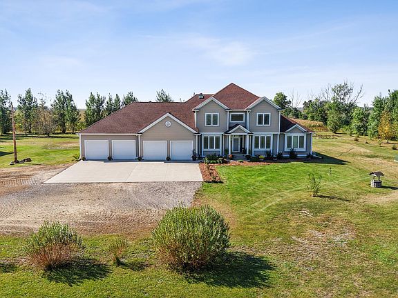 Beautiful Zook Christanson-built home on 5.42 acres! Originally built in 1999 and moved to a new foundation in 2018, this 5 bedroom, 5 bathroom home blends timeless craftsmanship with modern updates. Features include a main floor master suite, 4-season sunroom, 2 gas fireplaces, entertainer’s basement with bar, and walk-up access to the oversized heated 5-stall garage. Updates include new roof (2022) with skylights, new windows in the primary bath, new air exchanger, dual-zone furnaces, LED lighting, and fiber-optic internet.
