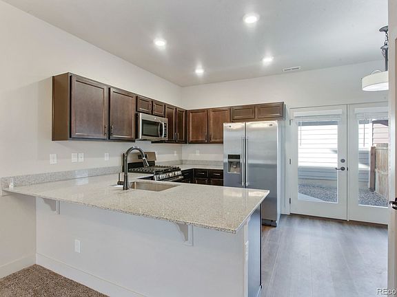 Great price for a Town Home in Thornton! Just move right in! This 2 bedroom town home with a 2 car garage is in immaculate condition! Main floor offers an open kitchen concept overlooking the dining area and living room, the kitchen has an eating space, granite counters, stainless appliances, gas stove, dark maple cabinets, half bath and a back door to the small yard to the garage. The upper level offers a master bedroom with a walk in closet, master bathroom with a walk in shower, dark maple cabinets, granite counter, tile in shower, 2nd bedroom with a full bathroom connected. All appliances and washer, dryer are included. This complex is clean and has a great location that is close to grocery shopping, restaurants, 5 minutes from I-25, E-470, Outlet mall, Orchard mall, movie theater. Elementary school is across the street, kids can walk to the Middle school and high school if needed.