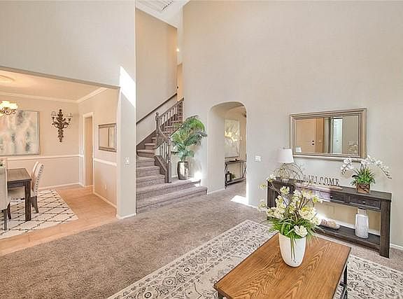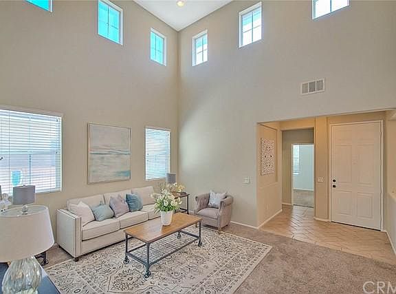 Welcome to this dazzling two story home in the well sought after Eastvale neighborhood offering over 3,100 sq ft living area with 4 bedrooms 3 baths and a 4-car garage that includes generous storage space. One bedroom is on the first floor, perfect for out of town guests. From the moment you enter, youll be wowed by the impressive high ceiling living room and an abundance of additional special features such as custom wall and ceiling treatments, upgraded lights and fan, custom outdoor fire pit, an amazing outdoor BBQ kitchen, and a fully owned solar panel system. The eloquent dining room leads to the open-concept kitchen that offers an abundance of wood cabinetry, expansive center island, double oven, and a spacious walk-in pantry. From the kitchen, you will enjoy the panoramic views of the huge family room with a decorative fireplace, and the nook area that leads you to the private backyard with salt water heated pool and spa. Upstairs living includes a laundry room with cabinet space and a laundry sink, 2 spacious bedrooms with large closets, an owners suite that includes a bathroom suite which boasts dual vanities, a glass-enclosed shower, soaking garden jetted tub, and a large walk-in closet. The second floor also includes a sizable bonus living area to be used as an additional family room, game room, or whatever your hearts desire. There is a lot to love about this well maintained and updated home. Get the full experience of this unique property in person today!
