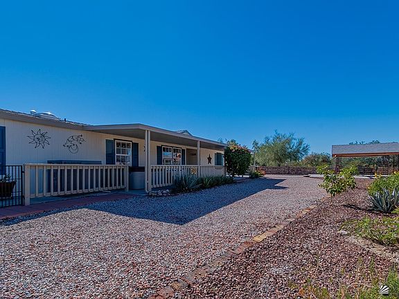 Located in one of Yuma’s most desirable neighborhoods, this beautiful golf course property offers stunning mountain and sunrise views! From the rooftop deck, enjoy panoramic vistas, mountain ranges to the east and golf course greens to the west. The easy-care yard features a custom-built gazebo, perfect for evening entertaining or sipping your morning coffee as the sun rises. A brick privacy fence surrounds the outdoor space, creating a peaceful, tranquil retreat. Inside, the home offers a three-bedroom, two-bath split floor plan with hardwood and tile flooring throughout. The living room overlooks the landscaped yard and charming gazebo and features an electric fireplace,ideal for cozy evenings with a hot cup of cocoa or your favorite wine. The spacious kitchen includes abundant cabinetry, granite countertops, upgraded appliances, a central island perfect for meal prep, and a wine cooler for your enjoyment. Just off the kitchen is a convenient indoor laundry room. Additional updates include an air-conditioning unit installed approximately two years ago, and a pest-treatment system integrated into the underside of the home for efficient service when needed. Outdoor living is further enhanced by the covered patio, which includes a spa that conveys with the property. The screened in covered carport and rear two-car garage both feature epoxy flooring, providing a durable, non-porous, and waterproof surface for easy cleaning. RV access and hook up with 50 amps service. Come start a new chapter in your fabulous new home!