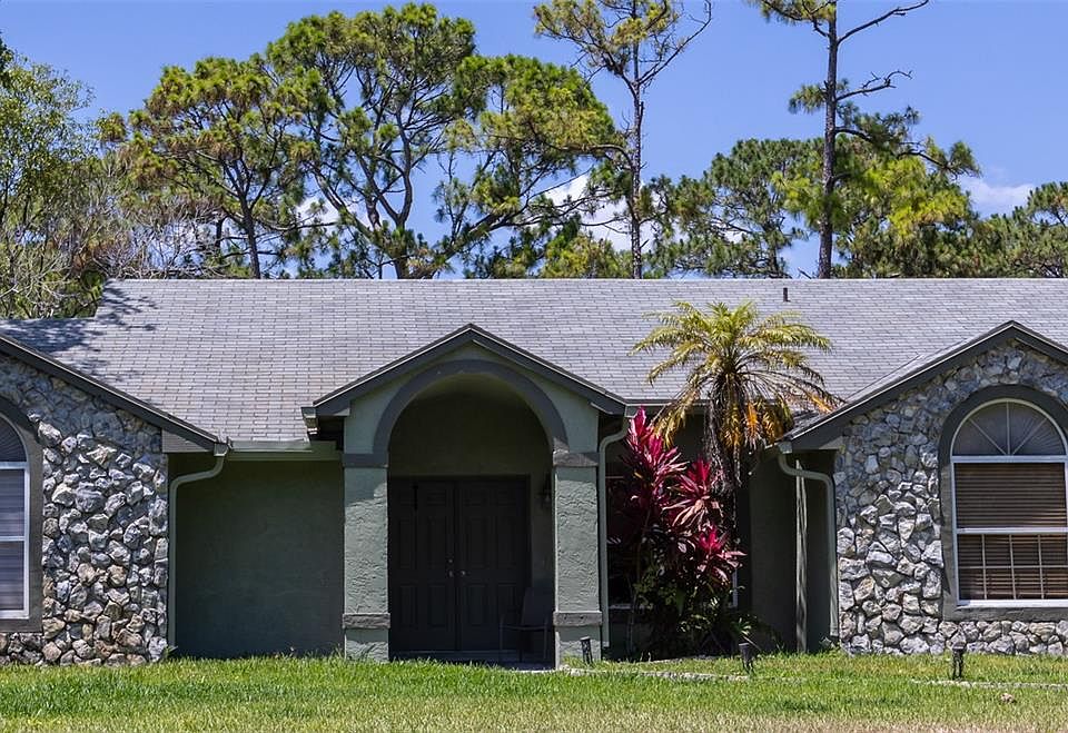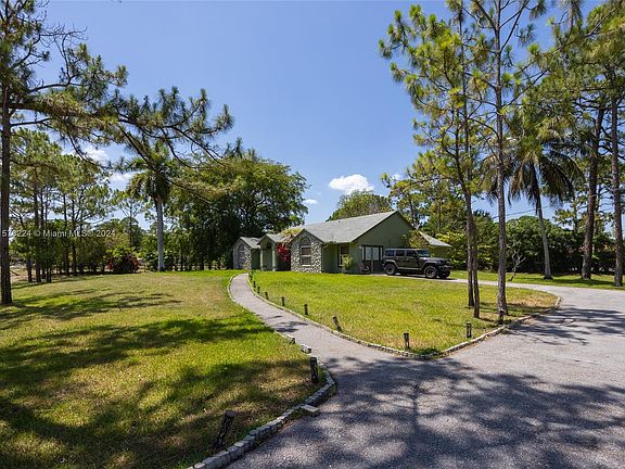 Very well maintained, 2200 sq.ft. under air, recently updated 3/2 in the heart of The Acreage on oversized 1.37 acre fenced/gated lot. Open concept with 12' ceilings in the living room and kitchen. Bathrooms and kitchen 100% updated in 2023 with high end appliances and cabinets. Large master bath includes rain shower and separate triangular tub. Home painted inside/out in 2023. Massive 22X34 screened/tiled patio. Property includes plenty of mature decorative and fruit-bearing trees and an automatic sprinkler system. Stocked and self maintaining pond containing a variety of native fish and turtles. Two 15X20 out buildings with electricity, one being a single car garage with rollup door. Home is on a paved road with paved driveway. Newer A/C and Roof. Call Listing Agent for a Showing.