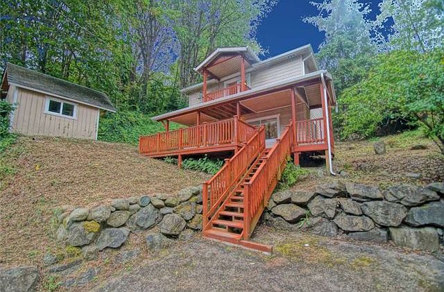 Great Opportunity for Investment property or owner occupied! Currently rents for $1,650 could possibly rent for more! Home has 3 bedrooms & 2.5 bathrooms. Open floor plan with living/dining room, good size kitchen with eating space. Master bedroom has french doors to balcony, bath has large vanity with double sinks. Third bedroom/den has access to large covered deck! Back yard is private with a beautiful evergreen setting. Easy access to freeways & very easy commute to downtown Seattle.