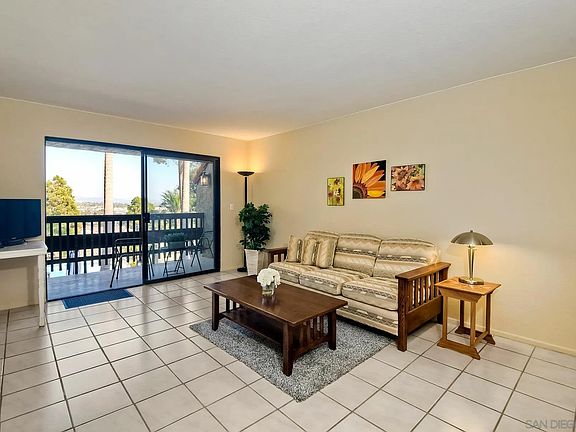 Location, Location, Location! Top floor, corner unit condo located west of the 5 in Del Mar just minutes to the beach. Enjoy gorgeous panoramic views of the city, mountains, hot air balloons, treetops & pool. Excellent floor plan w/ spacious rooms for easy living. Big kitchen w/ new quartz counter tops & newer appliances. Sit down views from large living room that opens to a nice private balcony. Master suite is huge w/ a window seat that doubles as extra storage, double closets, upgraded bathroom w/ a beautiful new shower. New paint, refininshed ceilings & new lighting. Indoor laundry may be possible with hall closet conversion & HOA approval. Complex has pool, spa. HOA dues include water, trash, common laundry.