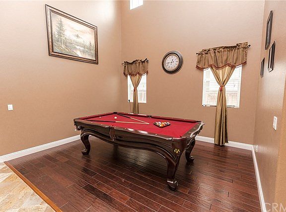 The perfect home awaits! Offering over 3k square feet of living space and a 4 car tandem garage. 4 bedrooms with a Bonus room. One bedroom located downstairs for added convenience. All rooms are generous in size. This home has beautiful upgrades. Travertine flooring, paired tastefully with a espresso dark wood flooring and trimmed with a nice luxury cream carpet. High-rise ceilings rimmed up-top with beautiful sun capturing windows and custom crown-molding and large floorboards. Kitchen opens spaciously to the family room for entertaining needs. The Kitchen is extra large providing a double oven and butchers island with nice earth/gold tone granite counters, equipped with a butlers pantry. Fully landscaped in the front and backyard. Backyard features a BBQ and custom vinyl awning equipped with dual ceiling fans, lighting and electrical outlets. Also has a gated dog run for the fury ones of the family. This home definitely has everything you could want and need...A MUST SEE!!!