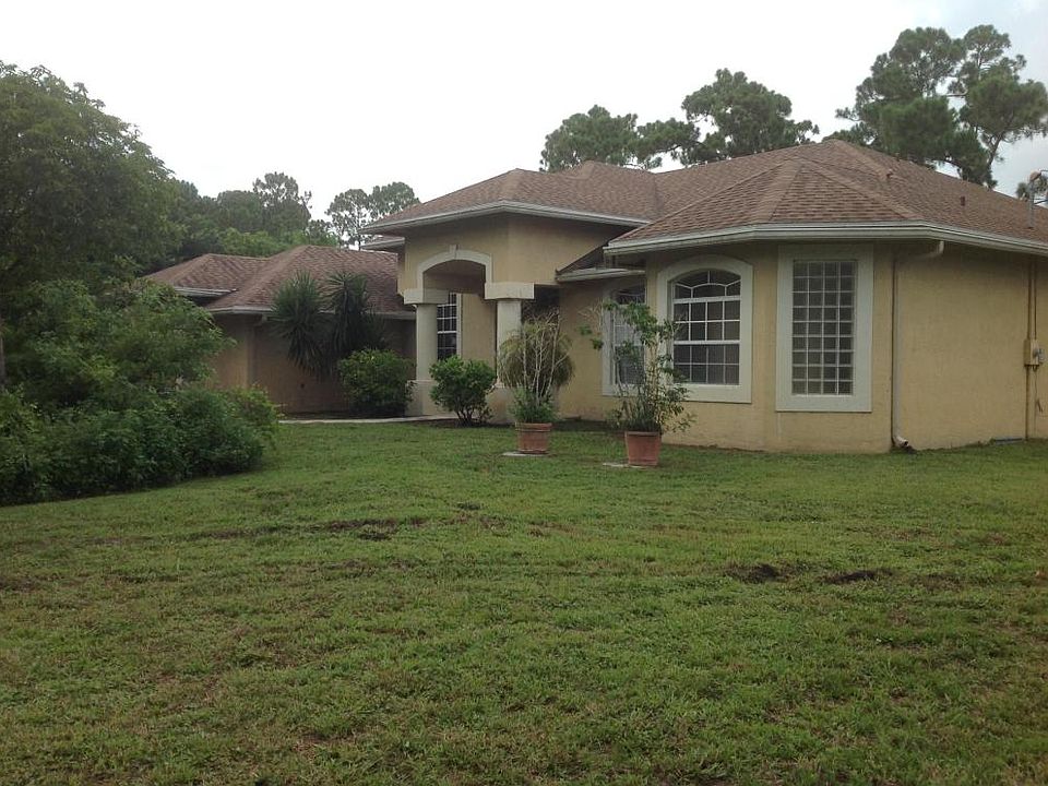 Yards of Yard 1.31 acres on dead end with a canal on the west side. Private location, enjoy the view from your screened patio with built in barbeque and sink. Feel the open feeling when walking through the double door into the open living area with Volume ceiling and tile floors thru out living area, wood floors in master bed room and 4th bedroom/den no closet. 3 full bathroom. The master bedroom has double sink, shower and roman tub. Huge walkin pantry, 42 inch cherry kitchen cabinet, other features are; hurricane shutters, recessed lighting, split bedroom floor plan, island in kitchen and large indoor laundry with laundry tub.