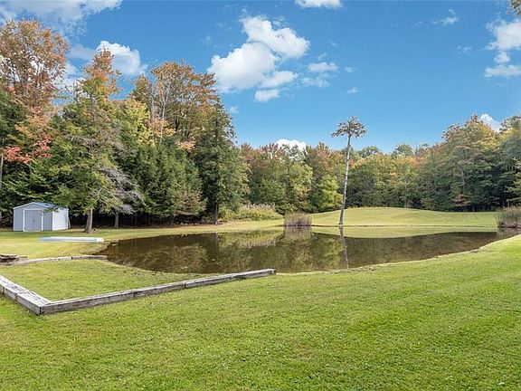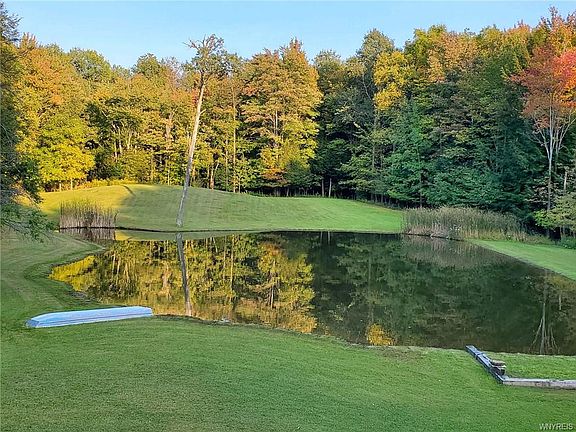 A nature lover's paradise - this 1900+ square foot lovely home on 13 gorgeous acres (2 acres cleared) w/ a spring fed pond beholds such privacy, peace and tranquility. Just 20 minutes from Kissing Bridge & 30 minutes from Ellicottville, you are going to love all that this property offers! Beautiful trees are what you see out of almost every window throughout... a real treat! The 1st floor features a 1st floor bedroom, Full bath w/ tile floors, Spacious eat-in kitchen w/ granite counters & tile floors looks out to this serene property (appliances included too!), Formal dining area, Family room w/ gas stove to cozy up to during the cold winter months & crown molding throughout. The 2nd floor includes a great sized Master Bedroom, Full bath & large 3rd bedroom. Additional highlights: Central Air, Fantastic deck w/ a Kohler awning & outdoor speakers overlooks this perfect property, 26' x 32' attached garage, Walk-out basement w/ glass block windows & high ceilings, Security system, Water filtration system, Shed in back, Complete tear-off roof w/ architectural shingles (approx. 8 yrs ago) & MORE!