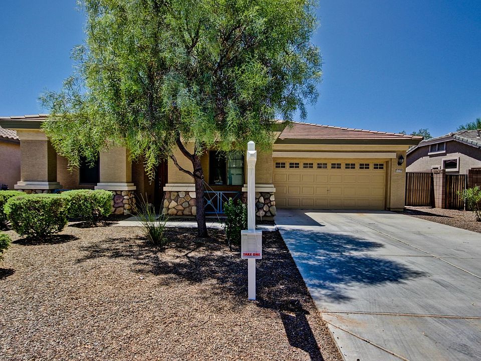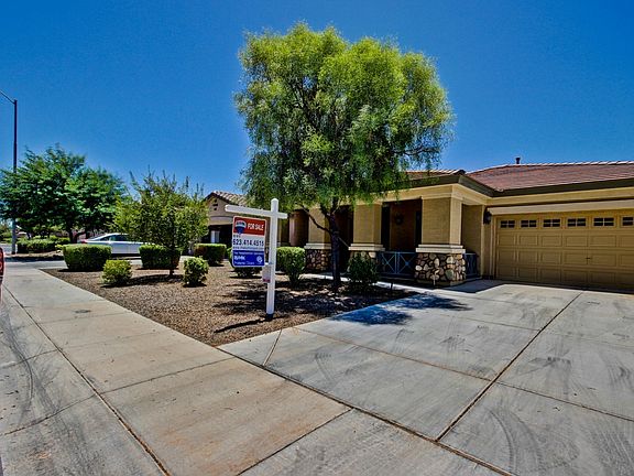 This has got to be to the cleanest 4 bedroom 2 bathroom in Fulton Estates Avondale Arizona. Built in 2007 by Fulton Homes. It is a single level ranch at 1913 sq ft and sits with north/south exposure on 7,500 sq ft lot at a cul-da-sac street, very little traffic. Chefs delight kitchen with granite countertops, natural cheery cabinets with crown molding, kitchen island, pendant lights, stainless appliances including the refrigerator, natural gas or electric cooking and walk in pantry. This 4 bedroom 2 bathroom in Fulton Estates Avondale Arizona offers an upgraded security system, fire sprinklers, window blinds, and recessed lighting. Surround sound pre-wire in family room and back patio. The hall bathroom has dual raised vanity for busy school days. Perfect Family Home.