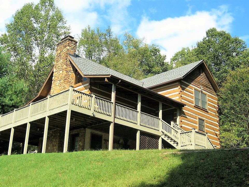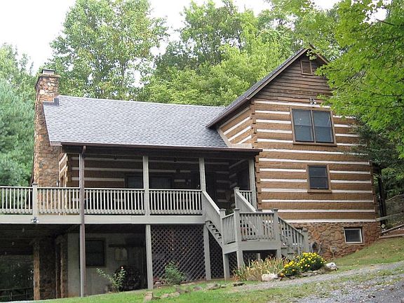 Country roads, take me home: Lovely three level, sturdy log home on 11 acres on sunset side of Fleming Mountain in beautiful Bedford County. Excellent and only six miles from Boonsboro Country Club. Abundant wildlife (deer & turkeys). Floor to ceiling native stone fireplace with gas logs. Middle floor has large open deck on front; covered porches on two sides.Three nice bedrooms...three bathrooms, one on each floor. Bright, railed overlook on top floor...great place for art, or to write that book you often promised! Walk-out, finished lower level with family room, wood burning stove, large modern office and new bathroom. Utility room has work shop, laundry, storage. Wood floors on two main levels. bright, open-island kitchen with built-ins on both sides and room for table. Nice, attractive, enclosed storage area on ground for riding mower, tools. Fine properties like this are rare!
