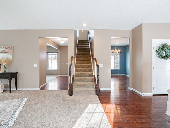 Welcome to 1376 Creekview Cir, a beautiful 5 bed, 4 ba colonial nestled on a spacious .35-acre lot in the desirable City of Green. Built in 2013, this home is ready for its next owners to enjoy. As you enter, you’ll be greeted by an open-concept first floor with 9-foot ceilings throughout, providing a bright and airy atmosphere. This full brick-front home offers plenty of space and versatile options for your lifestyle! The main level features hardwood floors in the foyer, dining room, and kitchen, as well as a kitchen and a scenic wooded view out back, with sliders leading to a generous deck. Additional highlights include a first-floor office/flex room, powder room, family room, living room, and dining room, all complemented by the expansive open foyer and high ceilings. Upstairs, the large owner's suite offers a private bath with a soaking tub, shower, walk-in closet, and water closet. The second floor also features 4 additional bedrooms, a laundry room, and a main bath with dual vanities and ample closet space. Looking for more? The partially finished lower level walks out to the private backyard, ideal for entertaining, and includes a half bath along with two storage rooms. The City of Green boasts desirable schools, 5 golf courses and is home to the Canton Akron Airport. This home offers easy access to a variety of dining options, local shopping, parks, and fitness facilities.