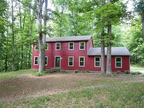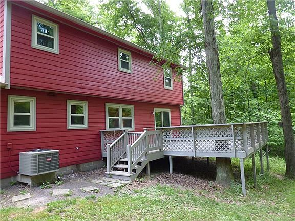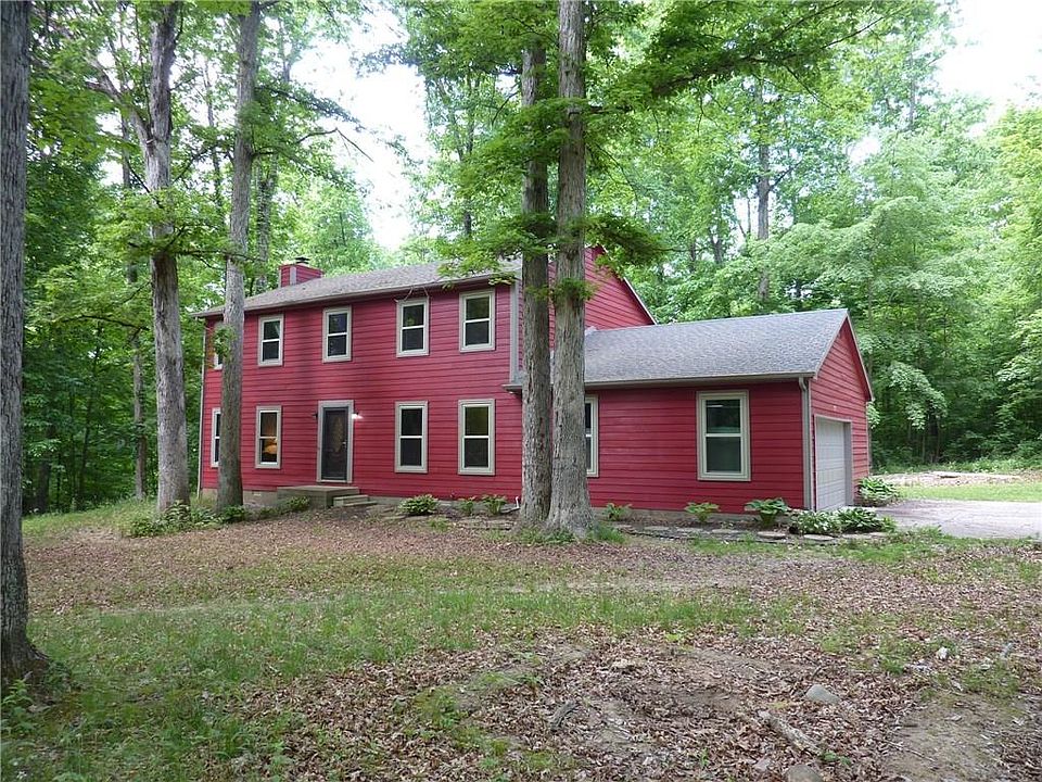A beautiful wooded setting in this peaceful and secluded neighborhood just north of town. This 4 bedroom, 2.5 bath house sits on nearly an acre with a large deck overlooking woods with nature out every window. Home features open-concept living room with fireplace and exposed beams looking onto the dining area and kitchen with stainless appliances and tile back splash. Formal living, laundry room, and a large storage room upstairs. Master suite with double closets. New roof, all new exterior paint, and all new windows with transferable warranty. 2-car attached garage with even more storage space. Conveniently located close to town for convenience, yet with the seclusion you want in a wooded country property. All appliances included.