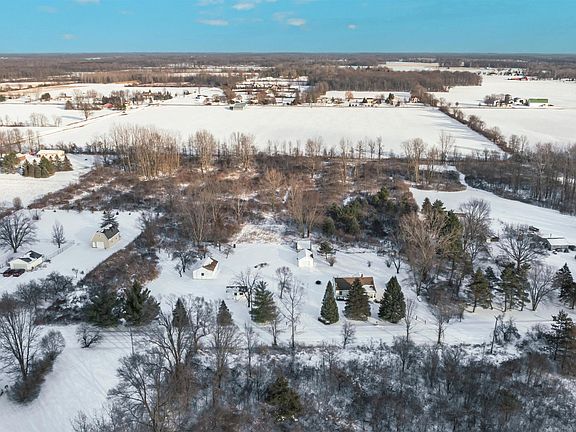 Very nice, turn-key updated ranch on 10 beautiful acres! Features include an updated kitchen with new cabinets, granite counter-tops w/undermount stainless steel sink, ceramic backsplash & floor (nice), spacious living room with a hardwood floor, 3 bedrooms, updated bathroom, vinyl windows, updated furnace, roof on the home & additional garages appear in very good condition (roof shingles on a couple of outdoor structures have been replaced), basement, low maintenance exterior (vinyl siding & trim), updated deck, more. Please note that there are a couple of garages & a very nice large shed. Property is beautiful. All this South of I69 near paved roads. Hard to find in this price range. Hurry on this one. Immediate possession!!