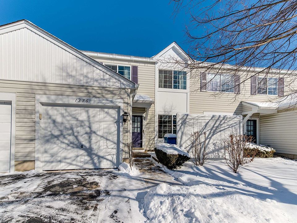 Wonderful and Inviting this 2 Bed, 1.5 Bath unit is now yours for the taking in the Eagle Pointe Subdivision! Open layout on the main floor with the Dining Room/ Living room combo that leads to a Galley Kitchen. SS appliances, large walk-in closet, and 1/2 bath. The Second Level Features the Main bedroom with a large walk-in closet and second Bedroom. Hallway closet Washer (3 months old) & Dryer. A very nice remodeled Full bath in 2021 and New flooring in the hallway. Home comes with a small but private patio in the front ready for your entertaining and a one-car garage. Furnace & AC Replaced 2019. Windows 2020. Perfect location Close to Rt 59 and Rt 34, downtown, Metra, parks, and restaurants. Water is included in the monthly HOA assessment. Sold "AS IS".