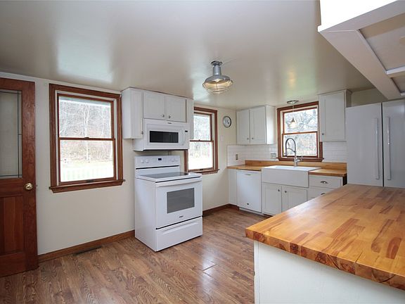 Be home in Chenango Forks. 2 bed plus a bonus room/1.5 bath farmhouse sits on over 4 acres of countryside. Hardwood floors. Built in cabinetry for lots of storage in the spacious dining room. Modern kitchen and baths. Appliances included. First floor laundry/mudroom. Bonus room upstairs is a passthrough room to the 2nd bedroom. Welcoming front porch and a back wrap around deck. Level lawn leads to an detached two car garage with concrete floor and bonus enclosed carport/workshop space. Also a newer barn with stone floor for storage. Blacktop driveway. Wooded back acreage. Full home inspection report available to share with qualified buyers. Minutes to the school , shopping & services. Bring your ideas and let's get you home.
