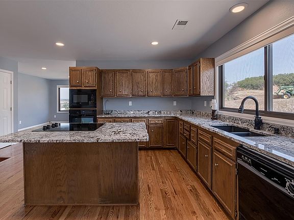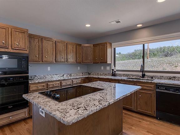 Beautiful ranch horse property on 5 acres! Brand new interior paint, all new light fixtures (all LED), new Bali custom window coverings throughout. Huge master bedroom with large walk-in closet and 3 addt'l bedrooms. Custom closets. Bright, open kitchen with granite counters. Huge windows throughout the home to enjoy the views and property. Many newer improvements include propane forced air, heat and A/C, Anderson windows, roof, hot water heater, garage door. Unfinished basement adds 2300+ sq ft. to finish how you'd like! New toilets, exhaust fans, radon mitigation system. Newer outbuilding for all your toys! 2 sheds/barns for animals or storage. Property is fully fenced. 2 addtl areas are fenced for animals. Property backs to 1,000+ acre ranch. Oversized 2 car garage. No pesky HOA. Well has been certified and tested by certified inspector. Septic tank recently updated to code. Escape from the busy cities and enjoy this quiet, beautiful land! Spectacular mountain views! Agent owned.