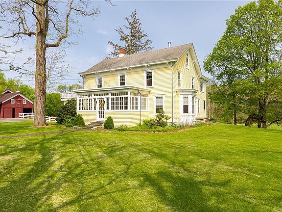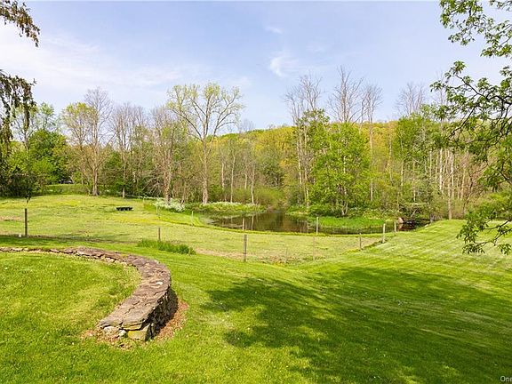 Charming Pleasant Valley 1845 Colonial on Great Spring Creek which runs through your pond. The lovely 5.9 acres has a fenced area for your horses plus a barn. Enjoy your view from the stone patio overlooking the beautiful lawns and flowers. The present owner has lovely cared for this home for many years with many updated features, the kitchen was remodeled with new cabinets, new stainless appliances, and a special order large deep country sink. The bathrooms have been remodeled, electric has been graded to 200Amp, 2 new 275 gallon oil tanks, 4 yr old hot water heater, The first floor has a separate 20 X 24 inlaw suite, the first floor also has an office with a separate office.