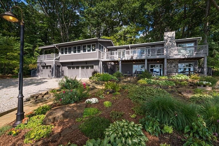 150' of water frontage on all sports Sugarloaf Lake! Beautifully landscaped & well cared for 3 bed/2.1 bath home with plenty of updates. Slate & granite kitchen w/stnless appl. incl. dbl oven & newer distressed look cabinets. Open living & dining area w/large windows for lake viewing & gas stone FP for chilly nights. Lots of closets, 1/2 bath, office area & elevator to 2nd floor! Upstairs boasts a luxurious master ste. with wide plank wood floor, vaulted clgs., 2 w/in closets w/organizers, desk area & sitting rm overlooking lake along w/prvt. vaulted deck & att. big tile laundry room. Lrg. bath offers electric skylights, granite slab shower & counters & copper sinks w/center vanity. Zoned heating & cont. hot water also! 2 addtl. beds, full tile bath & family room with wall of windows for lake viewing also. Solid wood doors, custom Hunter Douglas window coverings,freshly stained deck, great covered stone patio & huge back up generator are just a few more perks.This lake front is a must