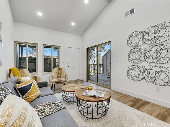 Welcome to this gorgeously remodeled, three-bedroom townhome in the lovely Corona community of Village Grove! Surrounded by mountainous scenery and a short walk to Border Lake. Just outside your private gated front patio is a meticulously maintained park-like oasis with winding paved sidewalks that lead you throughout this quiet community. As you enter through the front garden area, you are greeted by a spacious living room with vaulted ceilings and oversized windows that bring in ample natural light. To the left is a lower level bedroom with its own private access to the front gated garden area. As you walk down the hallway there is a lower level bathroom conveniently located for your family and guests. The hallway leads into the dining area and fully updated kitchen, including all new appliances with adjacent separate laundry room. Upstairs you will find the large master suite with its own bathroom vanity and oversized closet. The master bedroom has access to a Hollywood style en-suite that connects to the second upstairs bedroom also equipped with its own bathroom entrance and separate vanity. Driving into the private alley entrance, enjoy a small driveway leading into your two car detached garage with bonus storage space. The garage leads into the private backyard patio, perfect for entertainment and peaceful relaxation. Don’t miss this opportunity to make this wonderful home your own!