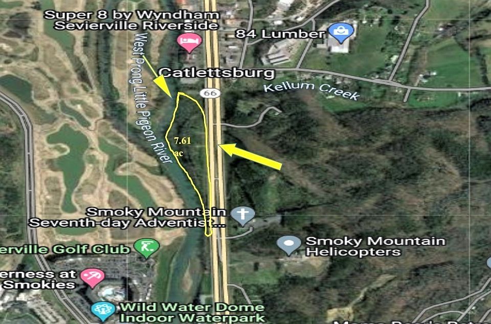 7.61 ACRES ON 1376 WINFIELD DUNN PKWY/ROUTE 66 IN SEVIERVILLE/PIGEON FORGE TN. CAN BE FOR LONG TERM LEASE OR FOR SALE . CLOSE TO WILDERNESS WATERPARK & GOLF COURSE. PROPERTY BACKS UP TO THE LITTLE PIGEON RIVER; APPROXIMATELY 1000 FT ROAD FRONTAGE; LOTS OF USES.