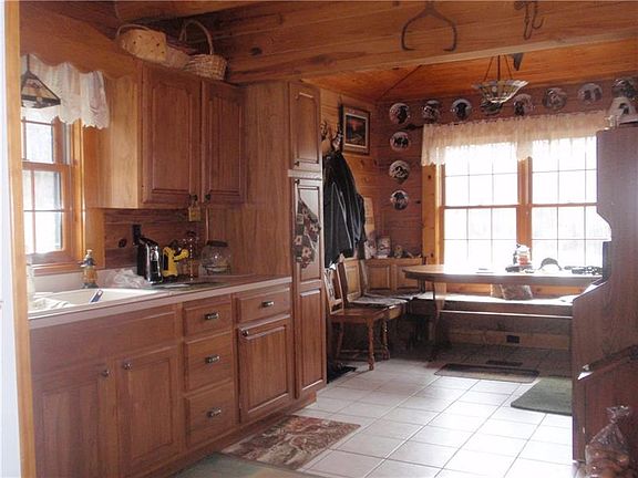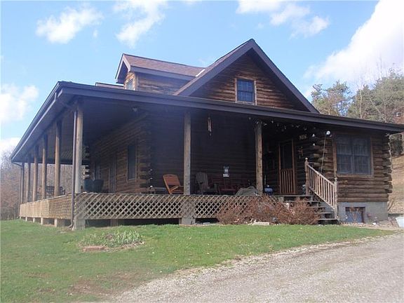 Immaculate Condition! Custom built Log home with wrap around porch. Two car garage, with finished 2nd floor, including H/C water, heat, 1/2 bath and kitchenette. 64" x 36' Barn with heat, water & stalls. Dog kennel, shed, fenced pasture. Seller DOES NOT own gas or mineral rights but does receive 200,000 cu. ft. free gas. Land enrolled in Clean & Green