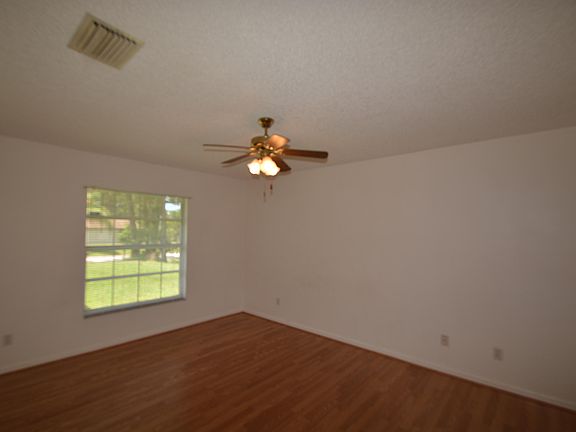 This 3 bedroom 2 bathroom home in SE Palm Bay features split floor plan and is very open and bright. Eat-in kitchen is equipped with refrigerator, stove, oven and dishwasher. Washer/dryer hookups in home. Ceramic tile flooring in kitchen and bathrooms. Ceiling fans, walk in closet and window treatments throughout. Screened porch and large backyard. This home is well water and septic.