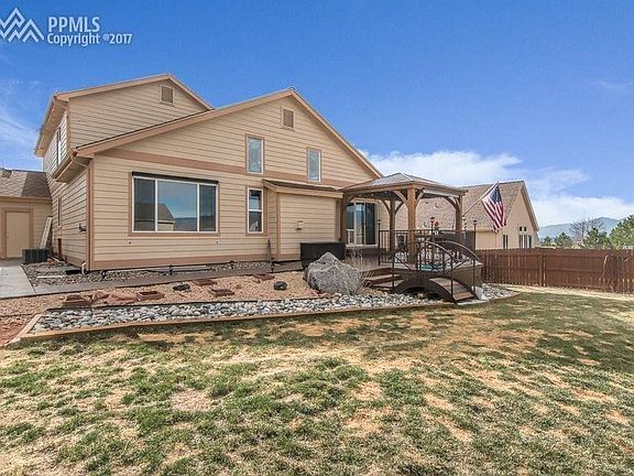 Wonderfully Spacious 4 bedroom with the master bedroom on the main level. Granite kitchen with stainless appliances and breakfast bar. Guest will love the upstairs bedrooms with open loft. East-west facing allows for great natural light all day. On a cold evening snuggle in front of the fireplace and watch a good movie. The basement has plenty of room for watching football on your big screen TV and guest will love their own jetted tub and dry sauna. Enjoy the Pikes Peak views while BBQing on your huge covered deck. They have tried to do the little things to make things easier. There is a USB charging outlet in the kitchen so it can reach the bar area. There is power out to the shed and patio area. There is at 20 amp service into the garage. Best of all is the ability to view the Thunderbirds each year at graduation time without hassling with the crowds under the luxury of a huge covered composite deck.