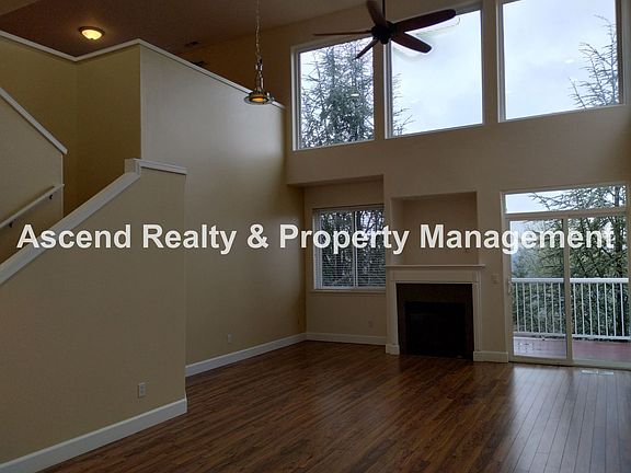 You will love this home!! Situated on the south side of Bull Mountain, pass through the neighborhood security gates and travel down to the home (2nd from the end of the street). Next enter into the huge living room with high ceilings, ceiling fan, gas fireplace and wood floors and head straight to the back deck for the view. Also located on the main floor are kitchen & dining nook. Kitchen includes refrigerator, microwave, dishwasher and gas range. Pass the kitchen and you'll find the laundry with washer & dryer, half bath and primary suite. Primary bedroom has built ins, 2 closets an ensuite bath with double sinks. Head upstairs to the extra large loft space with even more stunning views! On this level you will also find two spacious bedrooms and a full bath. Travel downstairs to the lower level to see the largest bathroom in the home with decor lighting, double sinks with light up mirrors and 2 person jetted tub. There's also an extra large closet here and a bedroom or you could make the main downstairs area a second master suite. This space also has a balcony which is more private, surrounded by tall trees. All floors in the home are solid surface except for some carpet on the lower level stairs. Forced air gas heat and central AC. 2 car attached garage with opener. Windows shine abundant natural light throughout the home. NO pets. NO smoking/vaping. HOA maintains yard. Resident pays all utilities including water/sewer, natural gas, electricity and garbage. Deer Creek/Twality/Tualatin ** Available NOW NO Smoking/Vaping NO Pets Deer Creek/Twality/Tualatin 4 bed & Large Loft/2.5 bath 3045 sq ft over 3 Levels HOA maintains yard Resident responsible for all utilities - water/sewer, garbage, electric & natural gas 12 month lease $40 application fee per adult $3500+ security/cleaning deposit Proof of renters liability insurance required