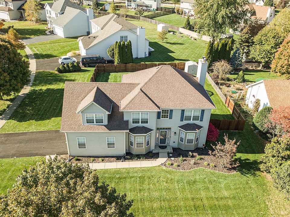 Welcome Home to Plainfield's Harvest Glen! Districting to Plainfield North H.S. this popular neighborhood offers close proximity to local dining, shopping, parks and commuting options. This home features a side load garage as a corner lot with a desirable large yard- fully fenced with an expansive deck and 2 sheds! Updates to this home over the years include a tankless HWH, hardwood floors & tile on first floor, updated kitchen with granite, white cabinets & black stainless appliances along with newer carpeting throughout the second floor. First floor Laundry & half bath off garage and an Architectural Shingled Roof in Great Shape. Cozy up to the fireplace this holiday season (gas starter) and enjoy the open concept of the back of the home- great for entertaining! Owners suite showcases trayed ceiling and bath showcases separate shower, updated flooring, jetted tub and walk in closet. Three additional second floor bedrooms with fantastic space and quality sized closets along with a separate full bath. The expansive backyard offers a large deck while still featuring ample room for playsets, firepits or add in a hot tub off the deck (dedicated water & electrical hookup)- unlimited potential! Exceptionally priced in sought after Plainfield North schools! Don't miss this one!