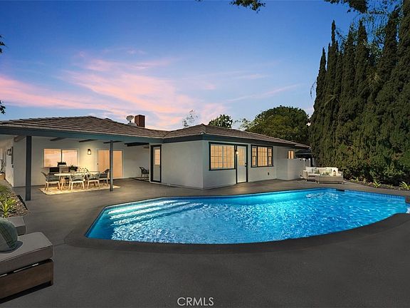 Welcome to 13762 Palace Way — a stunning single-story ranch-style pool home, beautifully reimagined with timeless design and high-end finishes. Perfectly positioned on a quiet cul-de-sac and set on an expansive nearly 10,000 SF flat lot, this residence offers the ultimate blend of comfort, sophistication, and California indoor-outdoor living. Step through the walnut double doors into 3,104 SF of thoughtfully designed living space, featuring 5 bedrooms, 2.5 bathrooms, and 2 versatile BONUS ROOMS ideal for a home office, media lounge, gym, or guest suite. An airy open-concept floor plan is bathed in natural light from abundant windows, sliders, and a skylight. At the heart of the home is the showpiece chef’s kitchen, showcasing a 36” stainless steel gas range with hood, beverage cooler, oversized center island with seating, Taj Mahal quartzite counters and backsplash, sleek White Oak cabinetry, and designer lighting. The kitchen flows seamlessly into the dining room with its cozy gas fireplace and skylight, and continues into the spacious family room — complete with a built-in bar, custom built-ins, floating shelves, quartz tops, an electric fireplace, and recessed TV niche — entertaining has never been easier. The primary suite is a true retreat, featuring elegant pendant lighting, mirrored wardrobe, and direct access to a private courtyard. The spa-inspired en-suite bathroom includes a dual-sink oak vanity, dedicated makeup station, walk-in shower with frameless glass door, and an additional mirrored wardrobe. The secondary bathroom is equally refined with a dual vanity, modern sconce lighting, and tub shower combo. Outdoors, discover your private California oasis — a newly remodeled pool, serene courtyard with fountain and fire pit, and an expansive covered patio perfect for entertaining or relaxing. Additional highlights include a 3-car garage with new epoxy floors and overhead storage, brand new AC system with smart thermostat, full PEX repipe, new dual-pane windows and sliders, new water heater, new garage door opener, and smart video doorbell. Plus, low property taxes, NO HOA, and NO Mello-Roos. This exceptional home is the perfect blend of luxury, function, and lifestyle — and truly must be experienced in person!