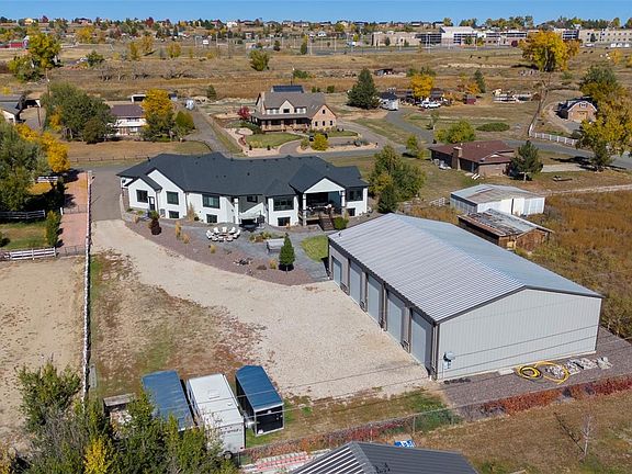 Nestled in the heart of the highly sought-after Arvada neighborhood, this custom modern farmhouse is a true gem. The property encompasses a sprawling 4,000sqft heated shop/barn, complete with full RV hookups & space for 4 RVs or more than 15 additional vehicles.An oversized 5-car attached heated garage ensures that your every vehicle & hobby has a dedicated home.Upon entering, you're immediately struck by the exceptional attention to detailed custom features. 5 bedrooms, 8 baths–the epitome of modern luxury.The heart of the home is an open floor plan that seamlessly connects the kitchen to the living spaces, creating the perfect backdrop for entertaining.The kitchen itself is a masterpiece, with a large island, quartz ctops, SS appliances, including an ice maker, & a discreet walk-in pantry.For added convenience, there's a welcoming main level office located near the entry.The owner's wing features a lavish bathroom, his and hers walk-in closets, & even a laundry room for added convenience.Each bedroom in this home offers an en-suite bath & walk-in closet, ensuring privacy & comfort for all.Main laundry room with a utility sink adds practicality to the upper level.There are also powder rooms on both the main & lower levels.The lower level of the home is an entertainment haven, offering a game area, a rec room with a stunning 5-TV wall, a full bar with an under-counter fridge, wine cooler, ice machine, and microwave.There's also an additional laundry room, theater room, workout room, & even a dance/billiard room.The walk-out basement is a stunner, providing seamless access to the outdoors.Situated on a 1-acre lot, this estate offers breathtaking views of the mountains & downtown Denver.The outdoor space is as impressive as the interior, featuring stamped concrete, 2 convenient gas grill areas, a spa, & an oversized fire pit, perfect for enjoying Colorado's stunning sunsets.This home offers a lifestyle of luxury, space, & entertainment.