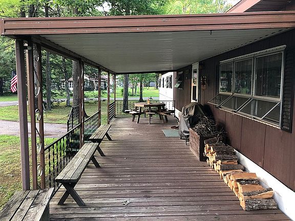 Are you looking for easy access to a full recreational 433 acre lake without paying the high waterfront property taxes? Check out this 4-season 14X70' mobile home with deeded access to Chute Pond via private landing and dock right across the road. Leave your boat in the water all season! Easy access to snowmobile, ATV, and forest road trails. Hunting, fishing, water fun! The home has a framed roof, re-shingled 2 yrs ago. Lot size 100X200, mound system, drilled well, natural gas furnace, central air, pex water lines, 54' L-shaped deck covered on the front. Huge brick fire ring patio. Huge 24X56' detached garage for all your toys: The first section (the party garage with a bar) is 18X24' and insulated, the next section is 27X24' with a double overhead door on the front and a single on the back so you can drive your snowmobiles through, and at the end is a 12X24' section used as a woodshed that has 10" headers so you could install doors. 2 storage sheds. Stove, refrigerators, washer, dryer included, along with many furnishings. Kitchen is 13x13, living room 13x21 with wood burning fireplace (with blower), master bedroom 11x13, 2nd bedroom 10x10, bath/laundry 10x7. Plus attached 9x18 bunkhouse. Many other features you'll have to come see. Also selling a 21' pontoon boat and trailer and 2 Ski-Doo snowmobiles under separate listings if you're interested. Call or text 920-716-4022