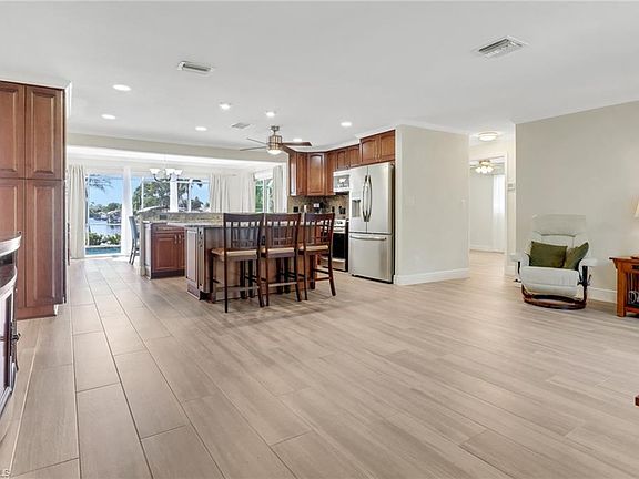 Welcome to this stunning 3-bedroom, 2-bathroom pool home in the boating community of River Forest! Situated on an oversized lot, this waterfront property offers Gulf access and is just minutes from the Caloosahatchee River. This beautifully updated home features brand-new impact-resistant windows and doors, modern tile flooring throughout, and a spacious open floor plan. The kitchen is a chef’s dream with gorgeous granite countertops, stainless steel appliances, and built-in cabinetry. Step inside and be captivated by the breathtaking canal views that greet you through the screened lanai—the perfect spot to enjoy jaw-dropping sunsets. The boat dock makes this home ideal for boating enthusiasts. Additional upgrades include a new roof, fresh interior and exterior paint, and fully remodeled bathrooms. The split-bedroom layout offers privacy, and the attached garage provides ample storage. River Forest is a voluntary association with an active social scene and offers a community boat ramp for easy vessel launching and cleaning. Conveniently located near top-rated schools, shopping, and dining, this home is perfect for year-round living or as a seasonal retreat. Don't miss out—schedule your private showing today and experience the best of Florida waterfront living!