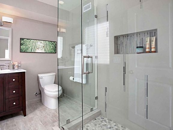 Located West of 5 at the crest pf Del Mar Heights; oversized 1/4 acre lot on a quiet cul-de-sac; Upper level living area takes advantage of westerly peak ocean and sunset views. thoughtful layout with sensible adjacency of defined yet connected spaces. Open Living room with vaulted ceilings, fireplace and large sliding glass doors leading to wraparound veranda. Spacious dining area, elevated "music area" sunny breakfast area, adjacent kitchen with countertop dining/bar, separate den/media room (with easy access to attic storage area) and convenient powder room complete the upper level. The "Sleeping Level" features a Primary bedroom suite with beautifully remodeled bathroom: custom "two person" vanity area, Japanese soaking tub and large walk-in shower, plus dual walk-in closets with custom fixturing. Access to a private fenced garden area via sliding glass door. Distanced by an interior hallway framed by sliding glass doors, two nicely sized (13' x13') guest/secondary bedrooms, each with large closets and sliding glass doors with access to fully fenced, private backyard area. Adjacent full bath in Hallway with shower/bathtub, dual sink vanity and plenty of fresh air via operable window. the Lower level offers an En Suite Bedroom with beautifully remodeled full bath plus an additional bedroom and full bath off the hallway; this bathroom has also been beautifully remodeled. Direct access to attached 3 bay garage; laundry area is located within 250 square foot "flex space" which is an interior area accessible through the garage. Endless possibilities such as game room, media room, workshop. Easy access storage cabinets ren the entire 20 foot length. Nicely lansscaped front yard; fully fenced and private backyard area with mature landscaping, refreshing pool and relaxing spa framed by floral gardens and level/manageable lawn area. important to note that is a very special lot given cul-de-sac location and 10500 sf size versus the standard 6500 sf lot size which is common in the Del Mar Heights area. there is no better geographic location with unparalleled access to nearby grocery shopping restaurants and specialty retail. Top rated Del Mar/San Dieguito School District and some of the easiest access to area freeways (without the noise!) All of this within 1/2 mile of the beautiful Pacific Ocean with Beach Access approximately 1 mile south at Torrey Pines State Beach or north to 15th Street/Powerhouse Park Submit a tour request now this offer wont last long