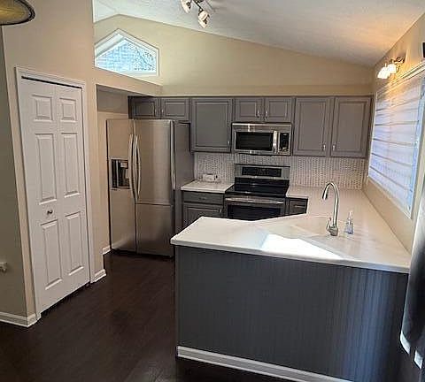 - Included: Disposal, Electric Range, Gas Water Heater, Ice Maker, Microwave, Plumbed For Ice Maker, Range Hood, Stainless Steel Appliance(s), Water Softener, Vented Exhaust Fan, Electric Oven, Dishwasher