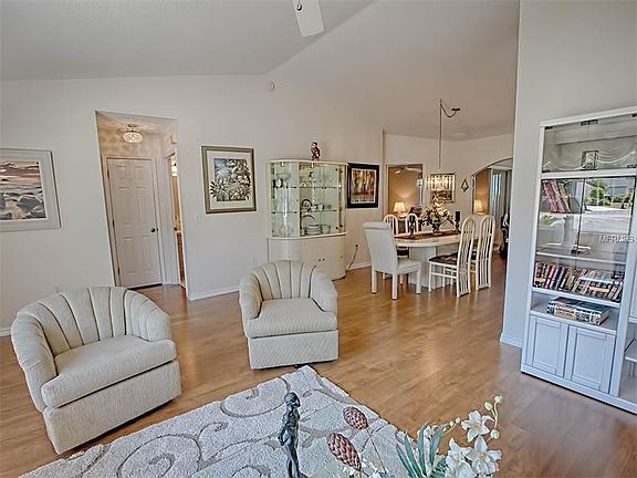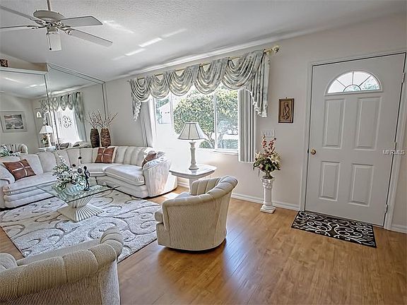 A Place to Hang Your Heart! Sparkling open design, 2 bedroom Juniper, 10 x 20 family room, enclosed 10 x 17 lanai, new roof, 2015 HVAC compressor, new quality laminate flooring and carpet in bedrooms, lovely landscaped corner lot. Furnishings available separately. Don''t miss this one! Located conveniently to Community Center, pool, activities, restaurants.