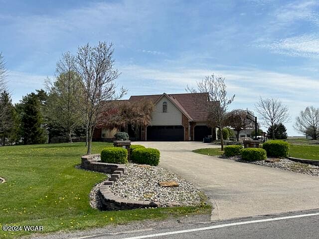 Above average quality build with wall of windows overlooking back yard and pond. Finished basement with huge rec room with fireplace, bedroom and bath in basement. Three car garage in the country but next to town.