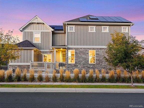 **MOUNTAIN VIEWS** This charming home on Quail Creek's sunniest corner boasts a spacious, open concept main level hugged by east, south and west exposed windows, a chef's kitchen with huge island, and easy access to the fully fenced, low maintenance side yard. Upstairs you'll find a light-filled loft surrounded by three bedrooms, two full baths, and the laundry room. The finished basement includes a comfortable family room, 4th bedroom, bathroom, storage area, and a niche that's perfect for a home gym or home office. The alley load attached two-car garage includes a large storage niche perfect for storing all your toys. This lock and leave two-story is an entertainer's dream, with ample common space, energy-saving solar panels, unlimited parking, and bragging rights to some of the neighborhood's best mountain & sunset views! Spend car-free evenings and weekends accessing the park, pool, McKay Lake trails and recreation, shopping, and dining via the neighborhood paths right outside your door or enjoying a beverage on your front or back porch in what is arguably Broomfield's friendliest and most pedestrian-friendly neighborhood!