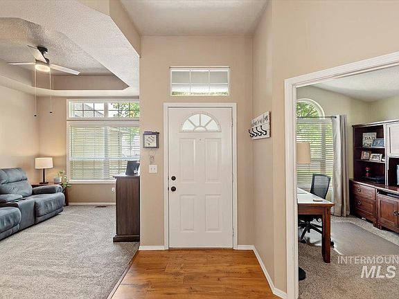 CAN BE USED AS A HIGH INCOME PRODUCING AIRBNB!!! Incredible location by Roaring Springs & Top Golf!!!!! A former Parade Home in immaculate condition boasting 10' ceilings, generous split-bedroom design, lovely open entry w/wood floors, floor to ceiling windows & spacious living room complete w/gas fireplace. Brand new roof in 2019! Professionally remodeled kitchen & baths! Huge master retreat provides privacy, opening to a large sitting area & office nook. Cook & entertain in your roomy gourmet kitchen boasting a breakfast bar & ample granite counter space & oak cabinets. The pièce de résistance is the backyard oasis surrounded by lush, mature landscaping! Private & shaded, this park-like backyard has a large covered patio w/ built-in misters to keep you cool, hot tub, raised garden beds, two storage sheds & RV parking! The subdivision, Sportsman Point, provides playgrounds, tennis courts & basketball courts & in a prime location in central Meridian w/ easy access to The Village, schools, recreation & more.