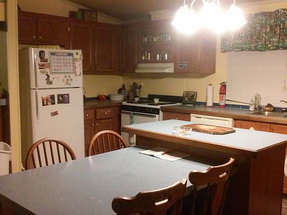 Open floor plan with a nice flow from the living room, dining room to the kitchen. Master bedroom and bath are separate from other two bedrooms and bath. Master room has walk in closet, plenty of room for king sz bed and master bath has garden tub and new tile floor. Living room and dining room have nice windows to enjoy natural light and watch wildlife. Kitchen has plenty of counter space and cabinets, a gas range and fresh paint. The home is tight and well insulated, makes heating and cooling more efficient. It has block foundation, underground utilities and the workshop has electricity. New roof in 2014, architectural shingles. Nice quiet neighborhood, no one lives in front or behind the house, plenty of privacy. The lot is wide open and flat for easy maintenance. Plenty of room for another garage or garden. Rural water and has septic system. Four miles to nearest grocery store and schools. Trash service is free. Property Taxes 2015, $201.08 with Homestead credit.