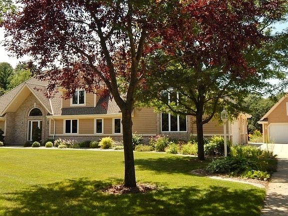 Custom built home on 6.48 acres in Hubertus. Welcoming grand front entry. 3 BRs, plus multiple large office, bonus room, dining & entertaining areas. LL rec room, features 2nd full KIT, BA, LR featuring a stone wall w/entertainment center, 55 TV, Bose sound system & 2nd fireplace. Relaxing patios, deck & pool. Granite counters, cathedral ceilings, covered grilling areas, large whirlpool, walk in closets, mud room laundry area, central vac. Oversized attached & detached garage space. Very private.